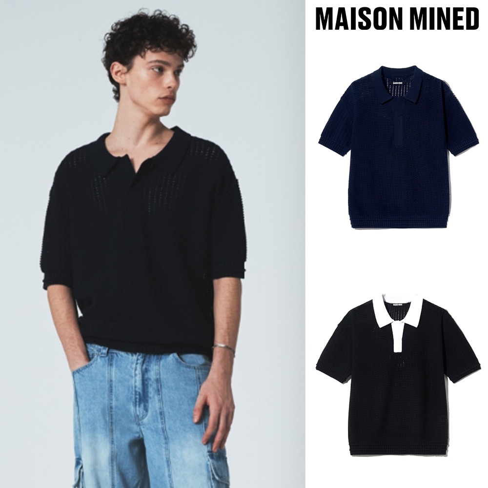 2024新着商品【MAISON MINED】 BUTTER CREAM KNIT HALF SHIRTS