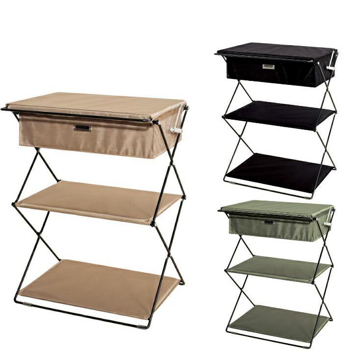 ファッションなデザインフォールディングラック 3段 折りたたみ オープンラック 収納棚 キャンプ ベージュ ブラック グリーン MIP-73