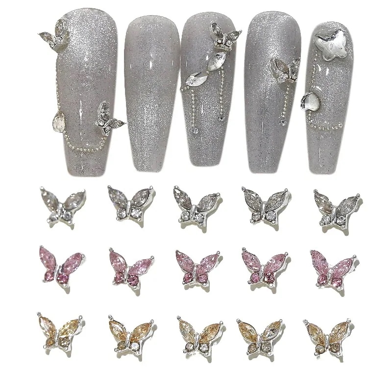 【人気満点NO.1】5粒ドリル合金ネイルアクセサリー蝶の爪飾りドリル