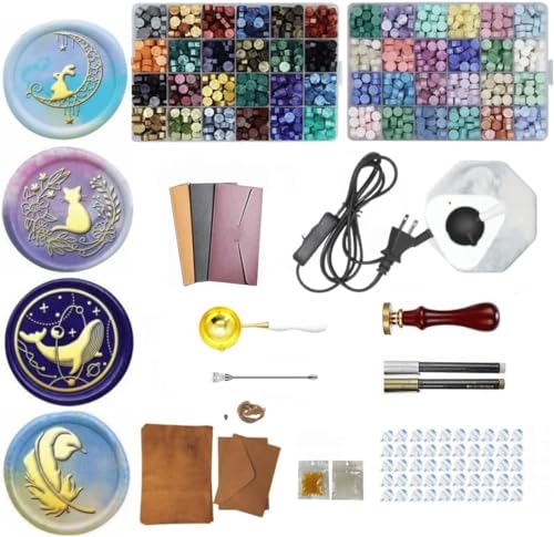 Kandar シーリングスタンプ 電気仕様 シーリングワックス セット 【48色豪華セット】 ヘッド 蝋封 ワックス大量 手紙 招待状 祝福 告白 祝い 手紙 装飾 DIY (48色ワックスビーズ+ス