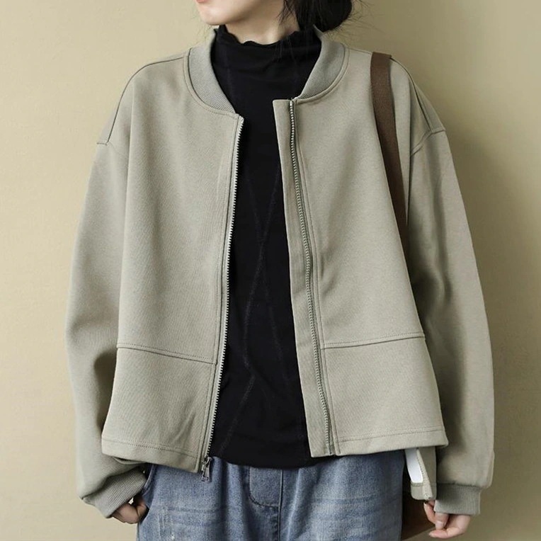 品質がブルゾン長袖ライトアウターレディースジャケット無地スウェットアウターショート丈春秋大きいサイズ20304050