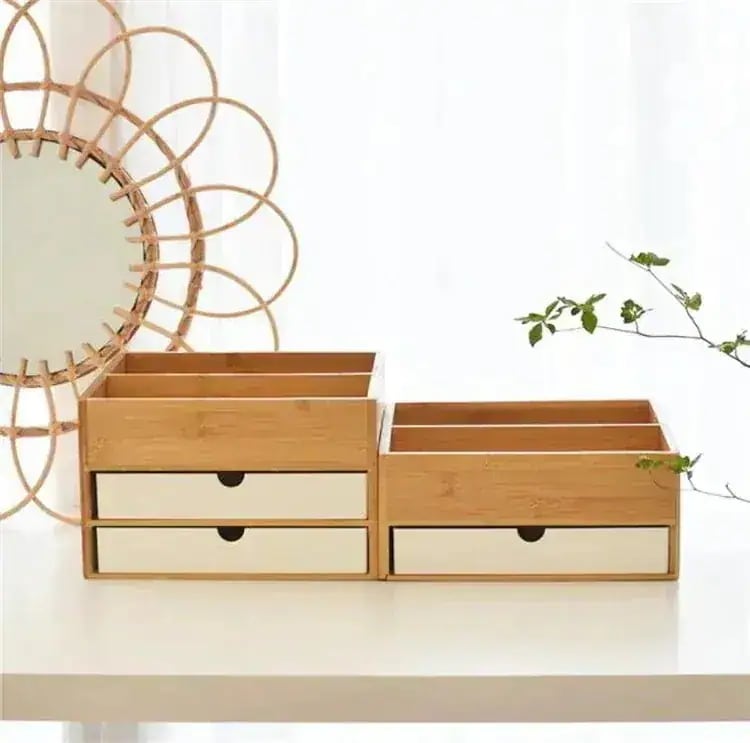 【キャンペーン価格 2個セット】スタイル 収納ボックス 竹 化粧品 引き出し 卓上 仕切り付き ジュエリー アロマテラピー ヘッドストリング 小物 スキンケア用品162563