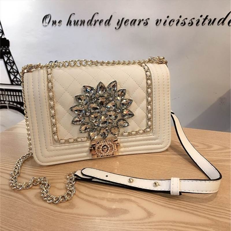 厳選された激安価格!4色 ショルダー ショルダーバック ラインストーン 肩掛け チェーン チェーンバック 無地 手持ち バッグ レディース キルティング 煌びやか 華やか 学生 ブラック ホワイト ゴールド シ