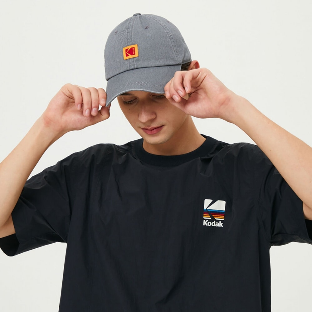 今週超歓迎コダックアパレルスクエアロゴリラックスフィットボールキャップグレー