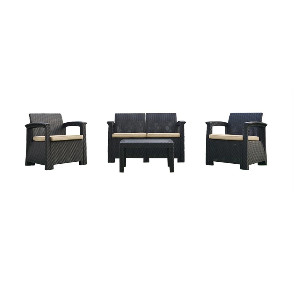100%新品【国内発送,送.料無料】ラタン調ガーデンファニチャーセット ガーデンテーブルセット ガーデンチェアー 家具 樹脂 ねじなし ホテル カフェ ベランダ テラス 屋外家具 高級 ソファ 【本体ブラック×ク