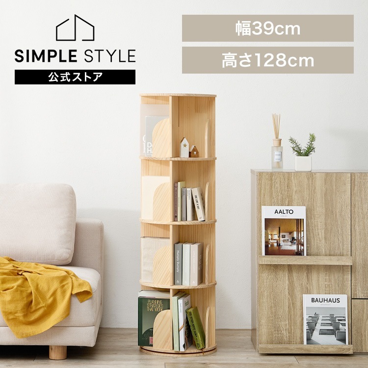 【2024人気NO.1】【目玉商品】本棚 回転ラック 回転本棚 5段ラック回転ラック4段 ナチュラル MUD-6428NA (代引不可)(TD)