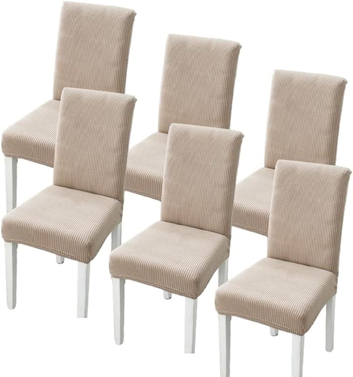 椅子カバー チェアカバー 背もたれあり 伸縮 洗える ノーアイロン 取り外し可能 無地 オフィス 家庭 ホテル レストラン Mx6枚(カーキ, Mx6枚)