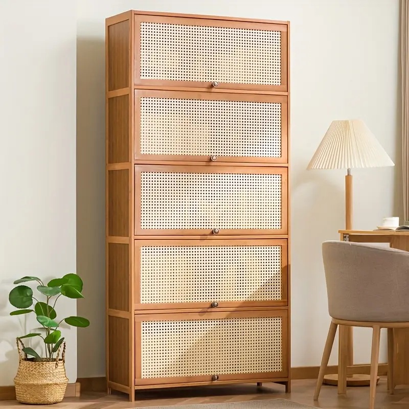 モダンミニマリスト木製収納キャビネット編み込みドア&引き出し2つ付き - キッチン・リビングルーム・玄関用多目的オーガナイザーホームデコレーションのためのコンパクトな長方形デザインと装飾トップ
