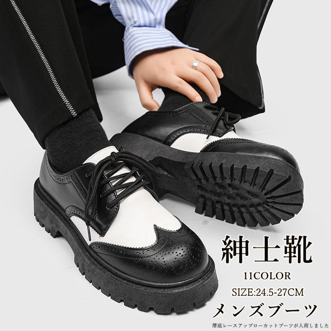 上品なスタイル靴 ブーツ メンズ 厚底ラバーソールシューズ ヴィジュアル系 ビジュアル系 靴 くつ チャッカブーツ デザートブーツ ドレスシューズ レースアップ ローカット PUレザー 合成皮革 合皮 シンプル 大
