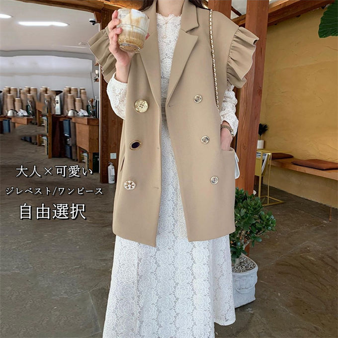 ジレベスト テーラードベスト 長袖ワンピース レースワンピ レディース 透かし彫り キレイめ フォーマル OL 通勤 韓国ファッション 可愛い きれいめ レイヤード フェミニン 20代 30代 40代