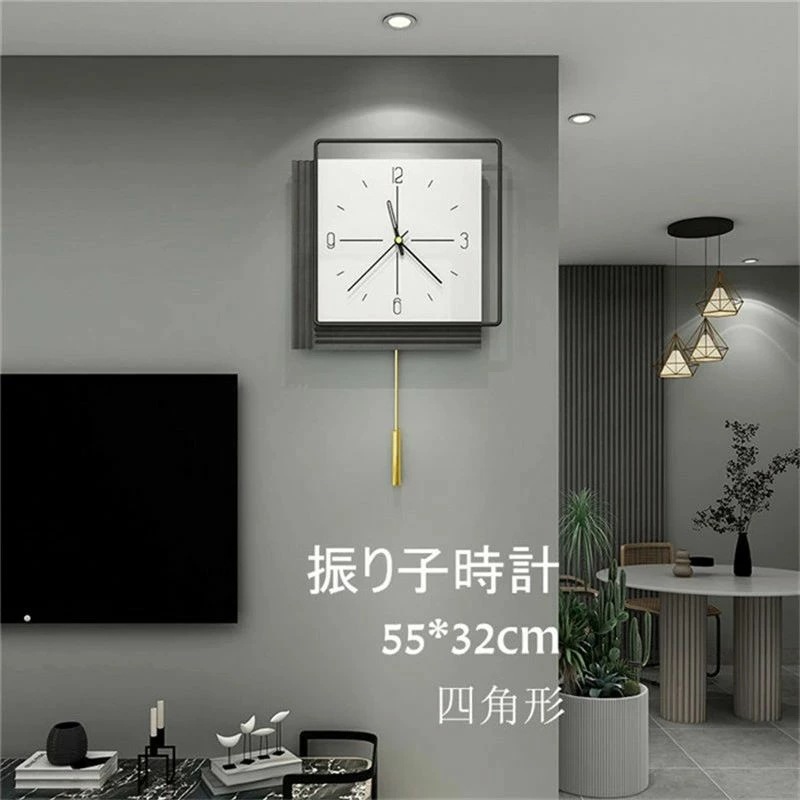 【日本製】大流行の振り子時計 掛け時計 時計 静音 四角形 クロック 部屋飾り インテリア 北欧 アクリル デザイン おしゃれ 開店祝い 引越し祝い お礼 電池 結婚祝い ギフト 壁掛時計 金属製 55*32c