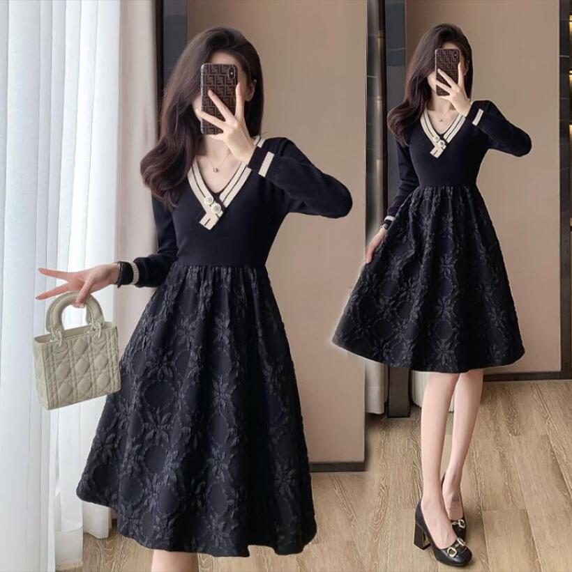 Vネック ワンピース レディース 30代 40代 Aラインワンピース フレアワンピース ひざ丈ワンピース ゆったり 長袖 お嬢様 大人可愛い 結婚式 二次会 披露宴 カジュアル 美シルエット 膝丈ワン
